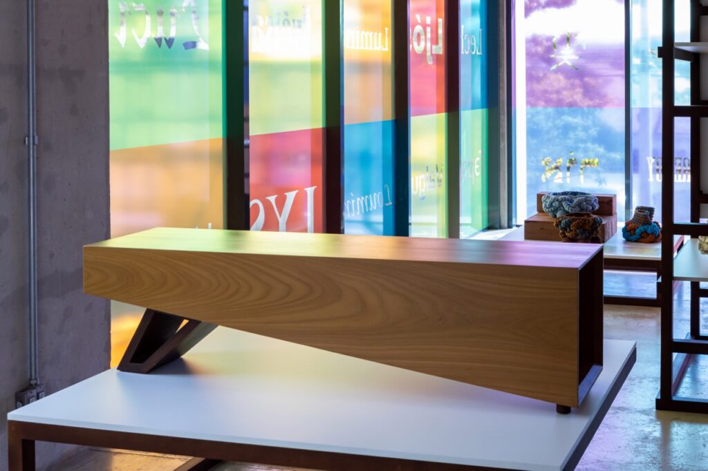 A proposta combina arte e design em uma experiência única nas dependências da loja ConTti. A vitrine recebe uma exposição de design com curadoria de Simone Bobsin, apresentando um recorte da Exposição de Design Catarinense Veras Design — uma oportunidade para o público conhecer e valorizar o design autoral catarinense. No interior da loja uma exposição de arte abstrata com os artistas: Camila Saavedra e Lu de Paula convida à imersão sensorial. A interação entre os diferentes processos criativos — o design e a arte — promove um espaço de diálogo entre as linguagens, o público e os artistas.