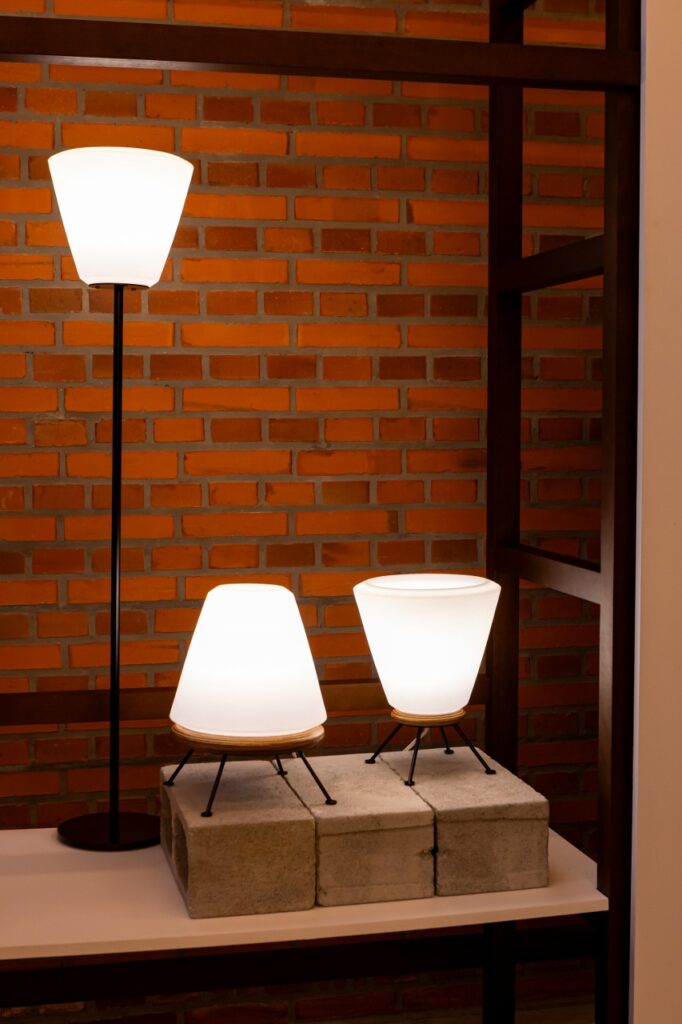 Poucos elementos e muitas possibilidades de composição caracterizam o Sistema Samba de Uma Nota Só, desenvolvido pelo Studio 566 Design, de Florianópolis (SC), que aposta na modularidade para a criação de diferentes luminárias. A reciclagem de parte do sistema e a redução de moldes são pontos fortes do projeto com produção de baixo impacto ambiental. O sistema possui quatro elementos: o anel de madeira maciça certificada para fixação dos pés, a fita de super LED e a fixação da cúpula superior de polietileno rotomoldado. Com dimensões de 30 x 25 x 15 cm, a simplicidade construtiva do produto facilita a montagem em casa.